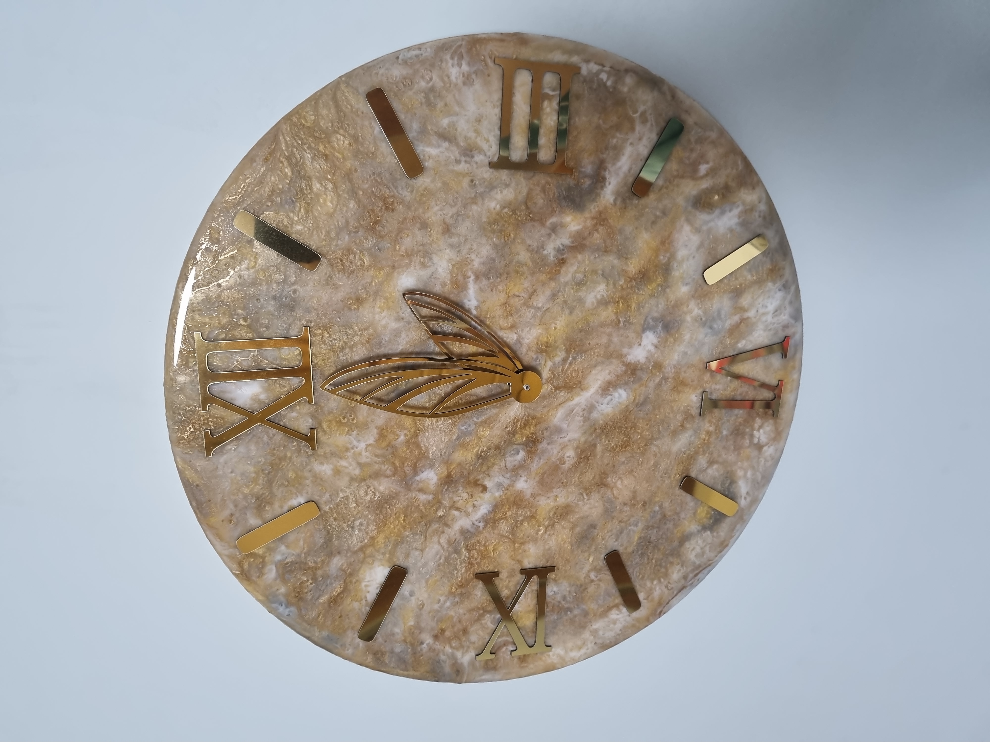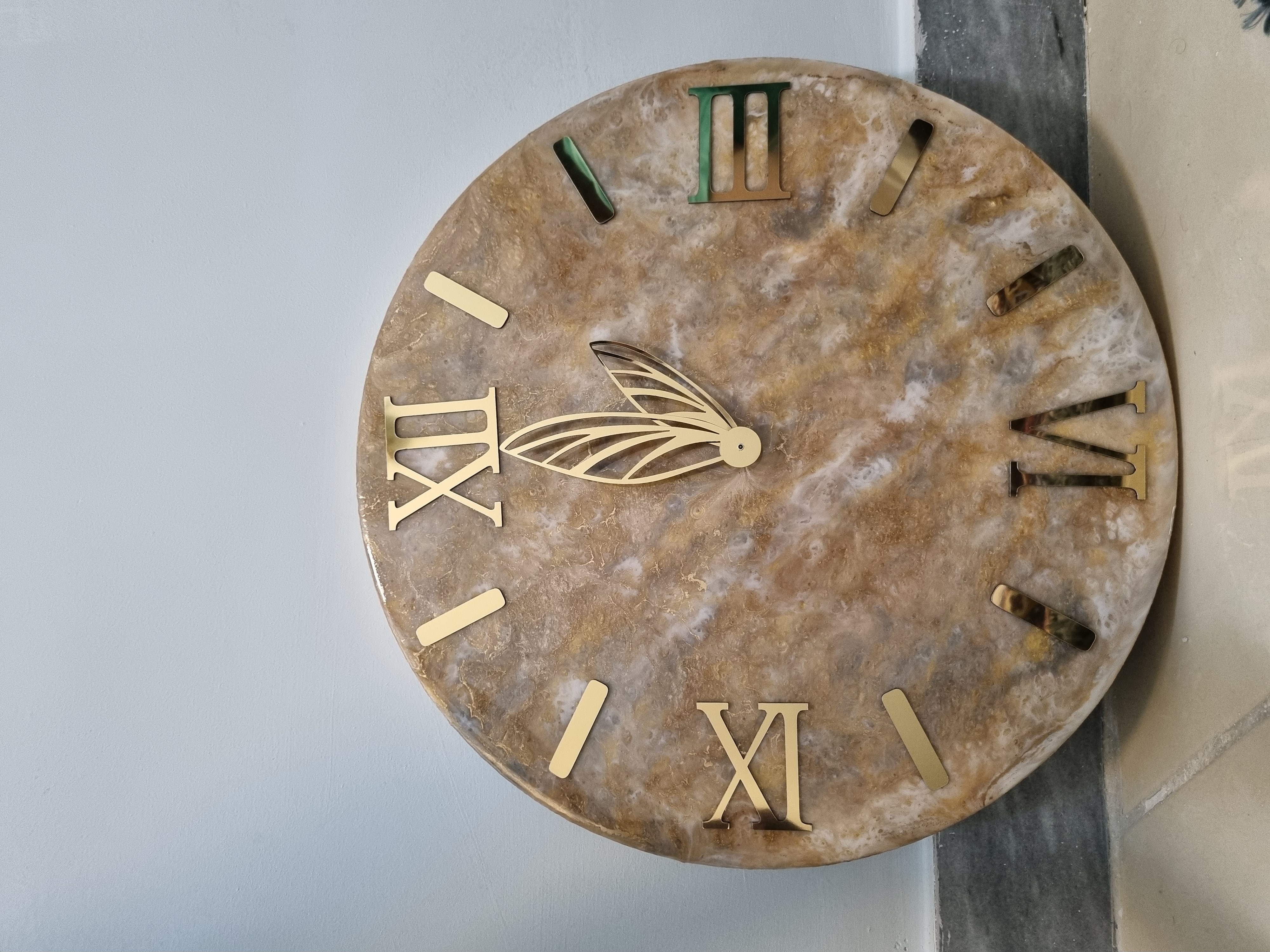 ساعت دیواری لوکس رزینی،بیس کار چوبی با طراحی رزین،طرح سنگ، موتور آرامگرد، شفافیت در حد شیشه و نشکن،سبک و براق، قابلیت تمیز کردن با دستمال نمدار
