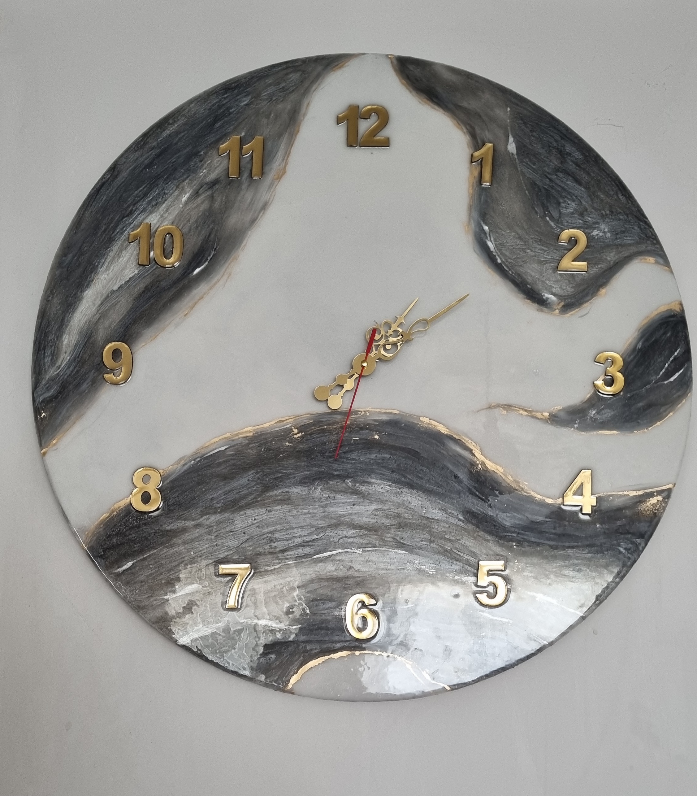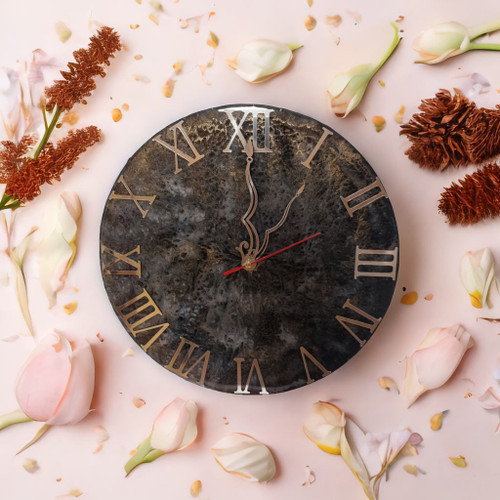 ساعت دیواری طرح سنگ رنگ مشکی رزینی